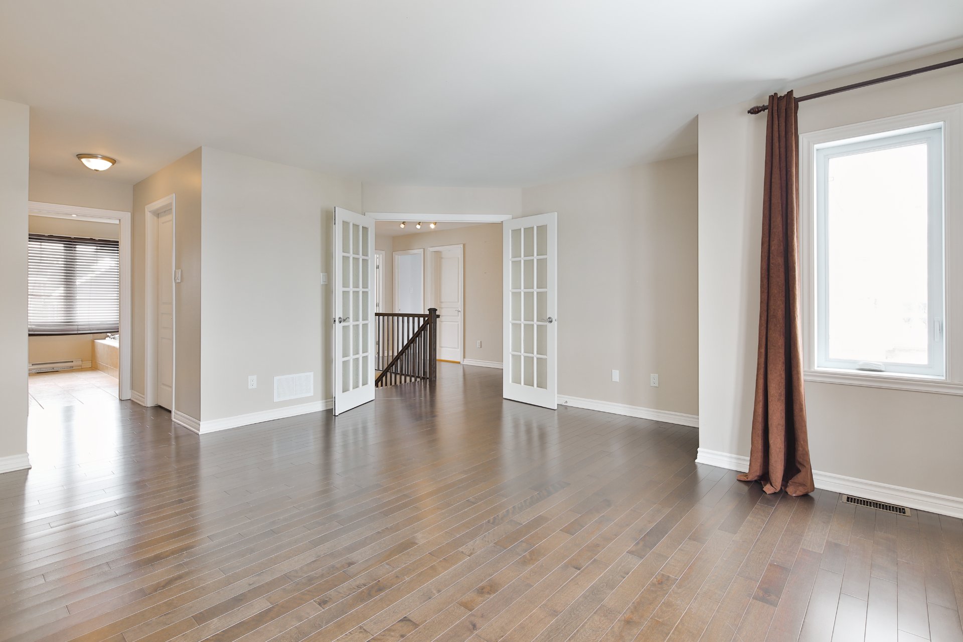 Dès l'entrée, on ressent la grandeur des lieux grâce à une belle grande pièce de vie lumineuse, parfaite pour recevoir. La chambre des maîtres est un véritable coup de coeur : très vaste (23 x 15,5), portes françaises, walk-in et superbe salle de bain attenante -- un espace intime et confortable.