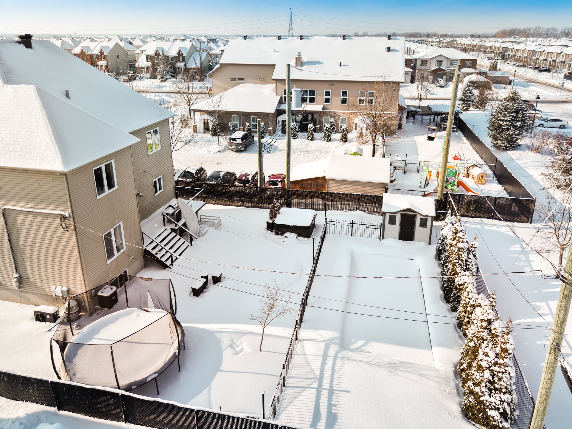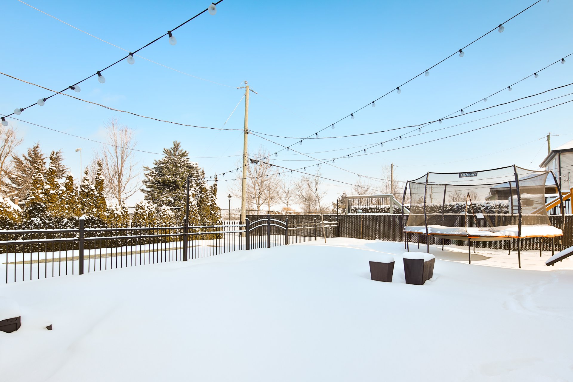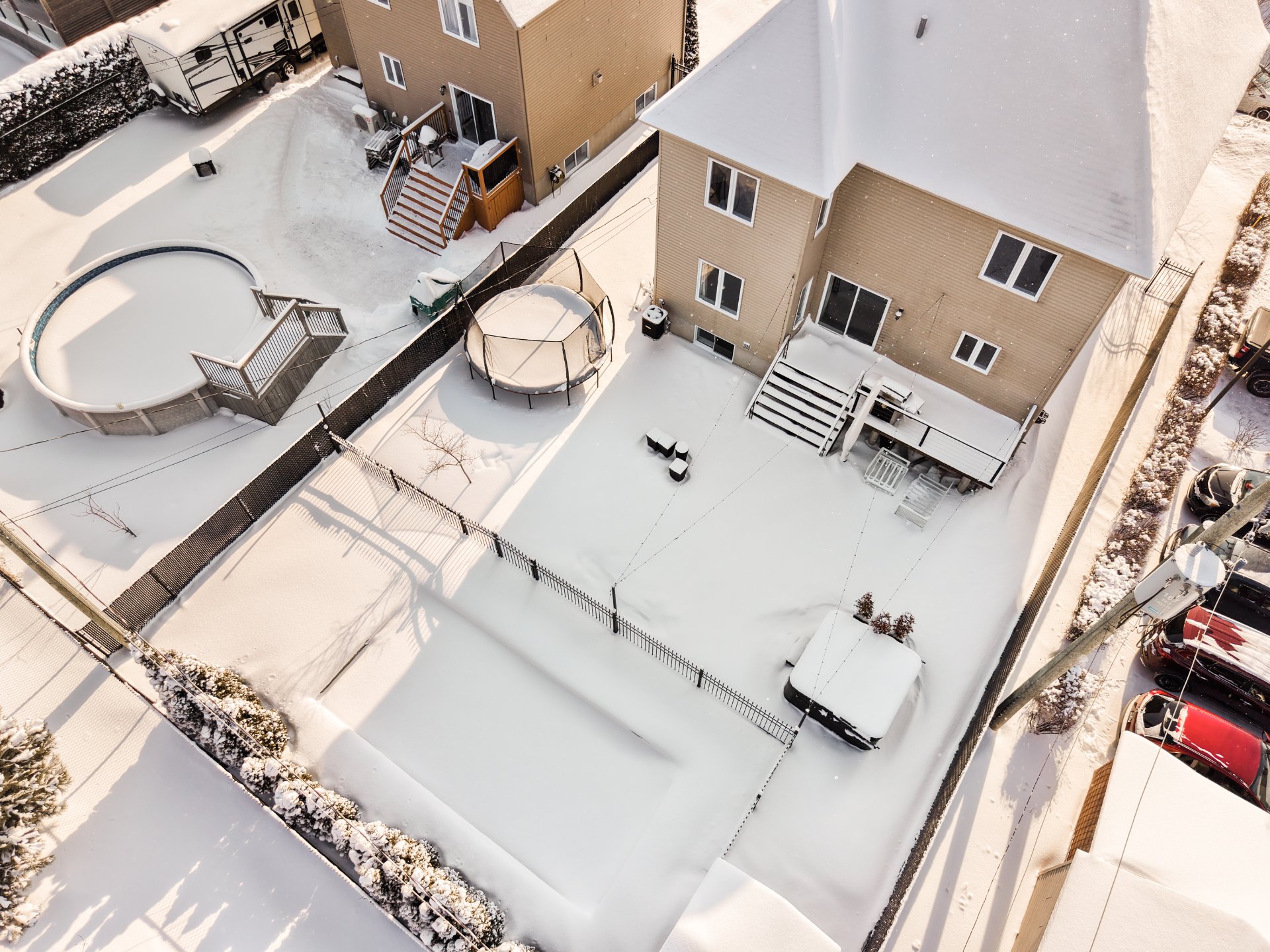 À l'arrière, profitez d'une belle cour aménagée avec piscine creusée et spa utilisable à l'année, autant en hiver qu'en été - parfaite pour relaxer et recevoir en toute saison.